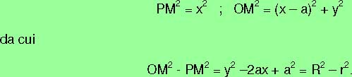 1° SOLUZIONE. Sia O il centro della sfera, XY l’asse del cilindro, R e r rispettivamente i raggi della sfera e del cilindro. Se si proietta sul piano OXY uno qualsiasi dei punti d’intersezione della sfera e del cilindro, detta M la proiezione di questo punto, è chiaro che il quadrato della proiettante (distanza del punto dalla sua proiezione) sarà uguale a