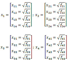 Si costruiscono i vettori normalizzati e, siccome stiamo lavorando con le frequenze, è sufficiente eseguire le radici quadrate dei valori presenti nella tabella.