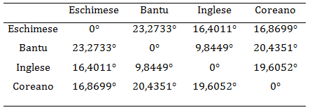 Leggendo i valori possiamo osservare che la più grande "distanza genetica" si ha tra la popolazione Eschimese e quella Bantu; mentre quella più breve è quella tra le popolazioni Bantu e Inglesi.