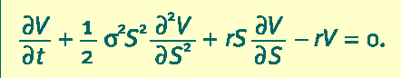 Fig. 1 L’equazione di Black e Scholes per l’evoluzione del valore V(S, t) di una particolare opzione, di un titolo o di uno strumento derivato basato sul prezzo di mercato S di un bene (azione, valuta, …) all’istante t, dove r rappresenta il tasso d’interesse senza rischi e σ la volatilità.