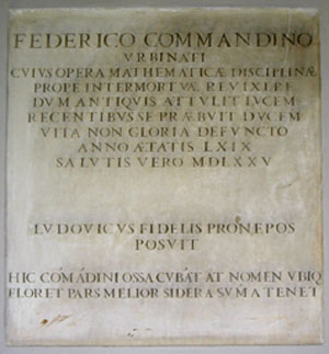 Federico Commandino è uno dei più noti rappresentanti dell’umanesimo matematico del Rinascimento italiano. É grazie al recupero, traduzione e “restauro” (nel senso di commento e ricostruzione di dimostrazioni mancanti) da parte sua delle principali opere della Matematica dell’antica Grecia che alcuni suoi illustri successori hanno conosciuto le opere di Archimede, Pappo, Apollonio conservando loro un salto notevole nel raggiungere risultati importanti nei relativi campi di indagine. Senza di lui, le scoperte di Keplero e di Galileo e tutta la cosiddetta rivoluzione scientifica avrebbero dovuto attendere più di un decennio per vedere la luce.