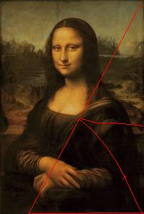 Il motivo di tale coinvolgimento è da imputarsi, se non esclusivamente, certo in buona parte, al fatto che l’occhio sinistro della Gioconda, ossia il destro guardando la figura, giace esattamente sulla linea mediana dell’intera composizione (fig. 1.) In altre parole: se si divide a metà il ritratto con una riga verticale, essa passerà per il centro della pupilla sinistra. Questo vuol dire che l’occhio dipinto si avvantaggia d’una simile posizione privilegiata e chi osserva monna Lisa negli occhi finisce per trovarsi, con lo sguardo, al centro del quadro.