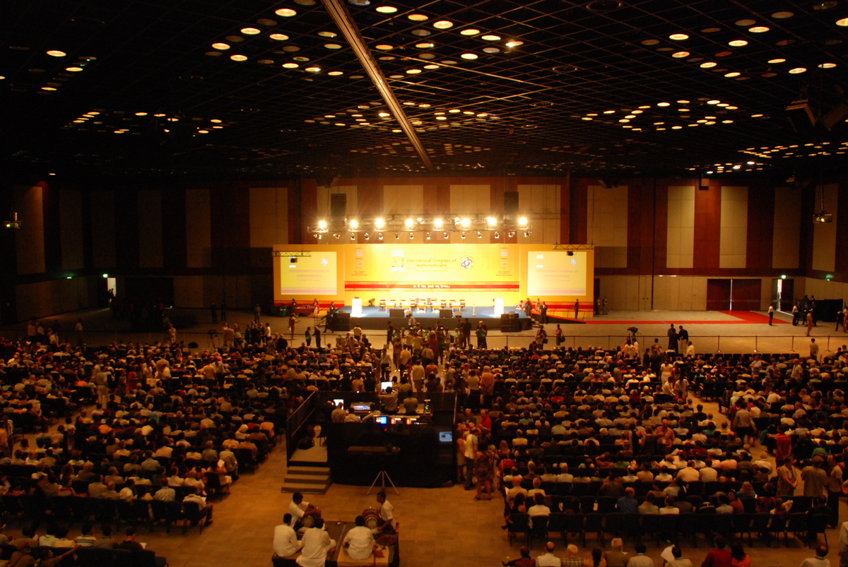 Il giorno dopo alle nove sono cominciati i lavori dell’assemblea, dopo la foto di rito, scattata alle 8 di mattina ad uno stuolo di matematici assonnati. Si dovevano prendere decisioni importanti, oltre ad eleggere il nuovo Presidente: eleggere i vicepresidenti, i nuovi membri dell’Executive Committee, decidere la sede del prossimo ICM, approvare l’adesione di nuovi paesi tipo il Nepal e l’emirato di Oman e decidere anche se dare o meno all’IMU una sede stabile: infatti finora la sede è variata nel tempo, ma l’esigenza di renderla stabile cominciava a farsi sentire. L’elezione di Ingrid Daubechies è andata liscia come l’olio, nessuno al mondo poteva non essere d’accordo sull’eleggere un professore di matematica e matematica applicata nota per aver ottenuto risultati rilevanti nella teoria delle ondicelle, prima donna a diventare “full professor” di matematica all’Università di Princeton: dal gennaio 2011 si sposterà alla Duke University, sempre negli USA, altra sede molto prestigiosa.