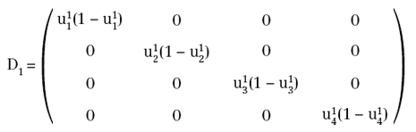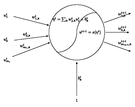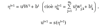 dove Wi = ( wij,k) è la matrice dei pesi sulle connessioni e bi = (bik) è il vettore dei coefficienti da assegnare all'ingresso costante, uguale ad 1 (bias).