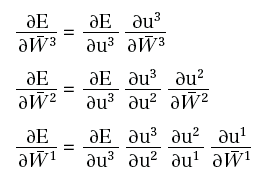 Se indichiamo con ζ=(W1, W2, W3), avremo E=E(ζ). Per ricavare le regole di aggiornamento della successione minimizzante, occorre calcolare: