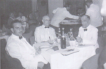 Transatlantico "Conte Biancamano" 20 agosto 1950. Pranzo di Gala: Picone va negli USA. Da sinistra: Gateano Fichera, Mauro Picone, Antonio Signorini.