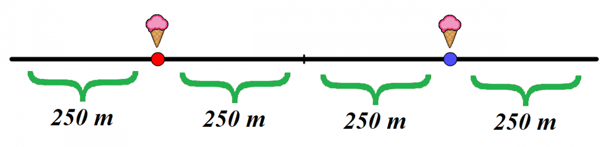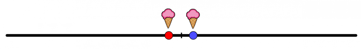Per spiegare meglio questo teorema si può ricorrere al cosiddetto paradosso dei due gelatai. Ci troviamo in una spiaggia lineare lunga 1 km dove ci sono due gelatai che offrono il loro rinfrescante prodotto. Qual è la posizione perché siano ottimali, per entrambi, le vendite? L'ovvia risposta sarebbe quella di mettersi a 250 metri dai due estremi, in modo che ciascuno copra 500 metri e nessun avventore della spiaggia debba percorrere più di 250 metri per acquistare un gelato.