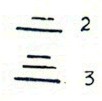 I cinesi, nella loro numerazione scritta, seguirono un percorso simile a quello tracciato; per esempio, dapprima scrivevano 23 in forma moltiplicativa e additiva nel seguente modo