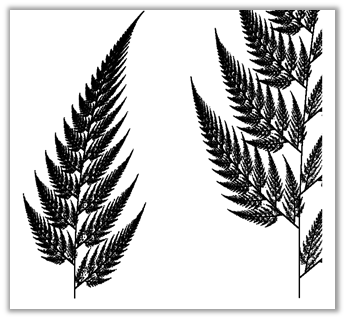 È così che si comprende come la natura costruisce, per esempio, la foglia di felce: se si compongono ripetutamente quattro semplici trasformazioni affini, ciascuna descritta da sei numeri, la forma che emerge al procedere del calcolo eseguito da un computer (tecnicamente detta attrattore), è appunto la ben nota foglia con le sue ramificazioni. Ma se osserviamo con attenzione la sua struttura cogliamo pure una fondamentale caratteristica dei frattali e quindi anche delle forme naturali: essa appare autosimile, ossia una sua parte riproduce in scala minore l'intera struttura della foglia.