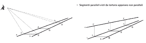 “Segmenti paralleli visti da lontano appaiono non paralleli”.