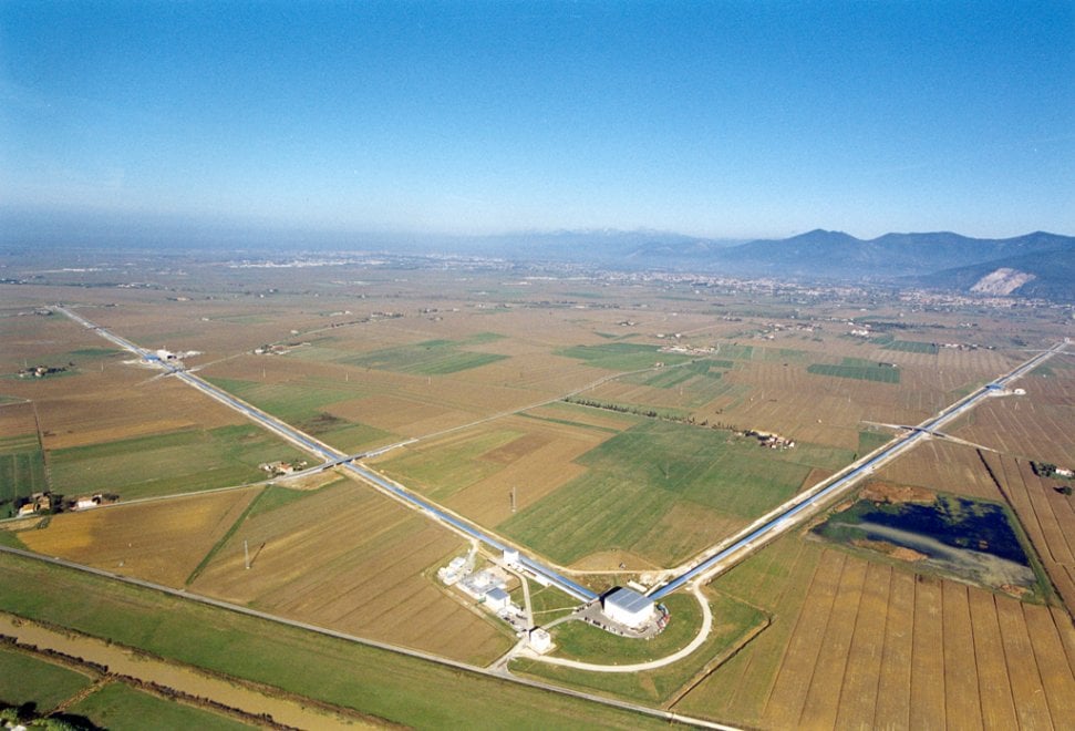 L'antenna Virgo vista dal cielo, con i due bracci perpendicolari da 3 km ciascuno