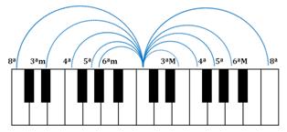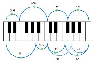 - verso destra: 3ª maggiore, 4ª, 5ª, 6ª e 8ª;