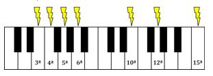 - la 10ª, la 12ª e la 15ª entro due ottave.
