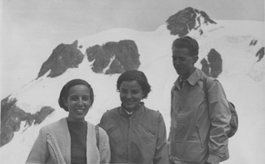 Carlo Bernardini con la moglie Silvia Tamburini e Maria Cervasi in Val d'Aosta nei primi anni cinquanta