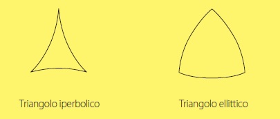Geometrie non euclidee Una geometria non euclidea è costruita negando o non accettando alcuni postulati euclidei (elencati nell’articolo). In particolare, per quanto riguarda l'enunciato del quinto postulato, che come si è detto può essere enunciato come segue: Data una retta ed un punto non appartenente ad essa, esiste ed è unica la retta passante per il punto e parallela alla retta data, ci si accorge subito che la sua negazione è legata ai concetti di unicità e di esistenza della retta parallela. Quindi le possibili negazioni del quinto postulato sono due, una che nega l'unicità della parallela e l'altra che nega la sua esistenza e possono essere così formulate: 5.1 Data una retta ed un punto non appartenente ad essa, esistono infinite rette passanti per il punto e parallele alla retta data. 5.2 Data una retta ed un punto non appartenente ad essa, non esiste alcuna retta passante per il punto e parallela alla retta data. A seconda di quale delle due negazioni si adotti, si ottiene una diversa formulazione della geometria, detta rispettivamente iperbolica e ellittica. La geometria iperbolica fu studiata dapprima da Carl Friedrich Gauss (1777-1855) e poi da Janos Bolyai (1812-1860) e Nikolai Lobachevsky (1793-1856) e fu la prima geometria non euclidea ad essere sviluppata e divulgata. Fu chiamata iperbolica da Felix Klein (1849-1925) nel 1871. In greco “iperbole” significa “eccesso” e in effetti in tale geometria il numero delle rette parallele ad una retta data e passanti per un punto fissato è in eccesso rispetto a quello (una e una sola) della geometria euclidea. L’altra geometria, ancora da Klein denominata ellittica, fu introdotta da Riemann (1826-1866) e nega l'esistenza di rette parallele. Ciascuna delle due geometrie non euclidee si sviluppa autonomamente, con tutte le conseguenze (ovvero teoremi) che ne caratterizzano le proprietà. Ad esempio, mentre nella geometria euclidea in ogni triangolo la somma degli angoli interni è uguale a un angolo piatto, cioè 180°, nella geometria iperbolica in un triangolo la somma degli angoli interni è minore di 180° e in quella ellittica la somma degli angoli interni è maggiore di 180°.