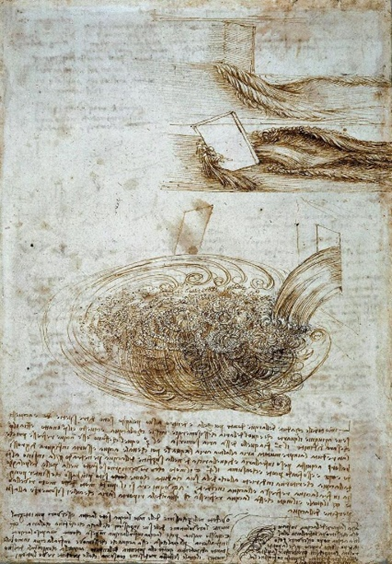 Studi di vortici 1513, Codice Leicester, Galleria degli Uffizi, Firenze.