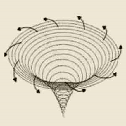 Per descrivere questa forma cominciamo con un esempio semplicissimo. Quando togliamo il tappo per svuotare un lavandino (oppure una vasca da bagno) pieno di acqua si vede l'acqua roteare velocemente verso il buco dal quale è stato tolto il tappo: si forma un vortice!