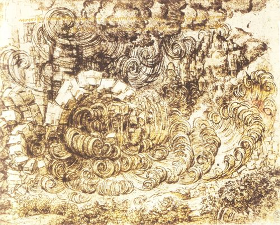 Vortici giganteschi compaiono nei disegni dedicati al diluvio. Il vortice per Leonardo raffigura sia il movimento delle forze morfogenetiche sia quello di senso contrario delle forze distruttive; contiene cioè al suo interno due spinte contrastanti che cambiano il verso.