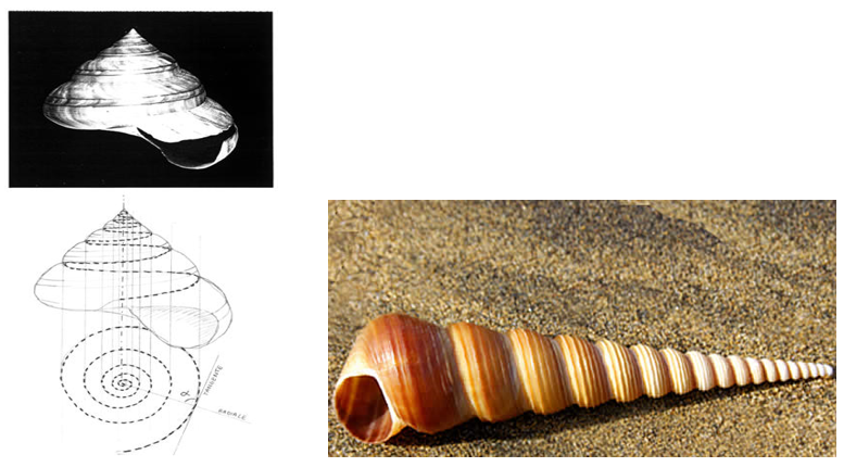 La spirale, intendendo in particolare la spirale logaritmica e la spira elicoidale da essa generata nella terza dimensione, è la curva che si ritrova in quasi tutte le forme di crescita in natura: dalla forma delle conchiglie alla disposizione di alcune infiorescenze; per antonomasia è la curva della crescita nel mondo vivente! Ricordiamo che esiste anche un altro tipo di spirale, quella archimedea, che unitamente alla doppia spirale, compare nelle decorazioni artistiche fin da epoche preistoriche. La spirale di Archimede di Siracusa (287 a.c.-212 a.c.) ha una caratteristica ben precisa: quella di avere tra due spire consecutive una distanza costante.