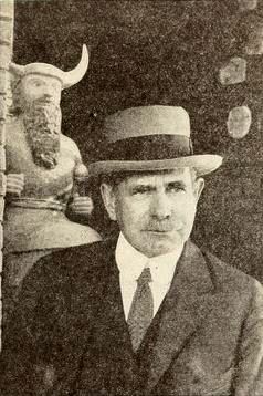 Si tratterebbe dell'americano Edgar James Banks (1866-1945), archeologo dilettante, antiquario, diplomatico e orientalista. Console degli Stati Uniti in Mesopotamia, territorio all'epoca sotto il controllo della Sublime Porta, Banks condusse rapide campagne di scavi, acquistò numerosi reperti mesopotamici e più in generale percorse in lungo e in largo i territori del Medio Oriente, rientrando in quella categoria di anglosassoni eccentrici, innamorati del mondo arabo. Categoria che ebbe i propri campioni in Lawrence d'Arabia e in Gertrude Bell.