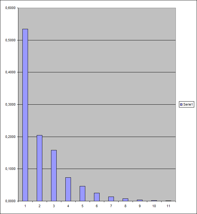 | 0,5345 | 0,2044 | 0,1579 | 0,0736 | 0,0464 | 0,0248 | 0,0136 |