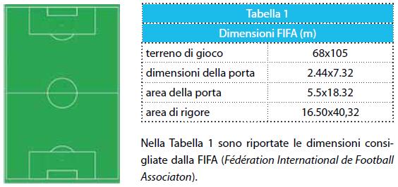 Iniziamo considerando il caso di un giocatore che si trovi in prossimità della linea laterale. Costruzione del modello. Assumiamo che le dimensioni del terreno di gioco siano quelle consigliate dalla FIFA (Tabella 1).