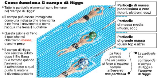 Il meccanismo destinato a denominarsi di Higgs–Englert&Brout prevede l'esistenza di un bosone scalare con il ruolo esclusivo di fornire la massa tramite la sua interazione a tutti i costituenti elementari, cioè i leptoni ed i quark. Le masse dei leptoni e delle diverse specie di quark sono tutte generate dall’interazione di queste particelle con il campo di forze associato al bosone di Higgs. Il suo ruolo è ulteriormente quello di compensare il diverso comportamento delle particelle sinistrorse nelle interazioni deboli. Ogni tentativo ulteriore di far comprendere meglio il meccanismo di generazione delle masse nelle teorie di gauge rinormalizzabili, come il Modello Standard, ha indotto azzardate metafore. Einstein criticava il fascino della semplificazione, ammonendo che bisogna avere cautela nell’usare analogie troppo semplificatrici. Einstein ammoniva che si poteva rendere semplice ogni argomento, anche il più sofisticato, ma facendo attenzione a non confondere con una eccessiva semplificazione.