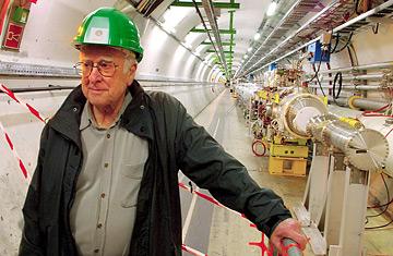Peter Higgs all’interno del tunnel dell’acceleratore del CERN