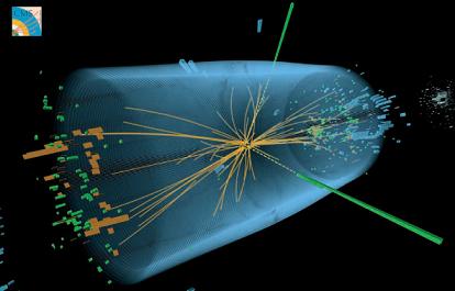 La ricostruzione della traccia di un decadimento del bosone di Higgs, elaborata dall’esperimento CMS ad LHC.