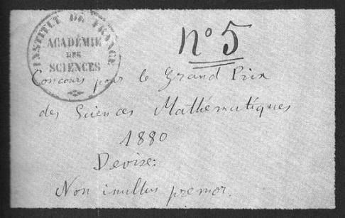 Busta in cui Poincaré inviò la sua Memoria al Grand Prix del 1880