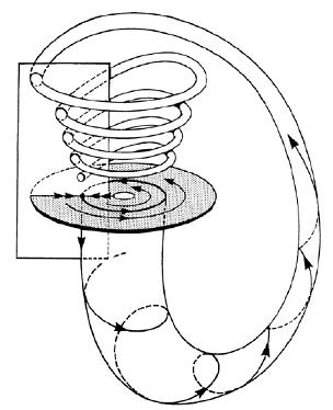 Disegno tratto dall' articolo di Shilnikov e Turaev (1995) sulla "blue sky catastro phe"