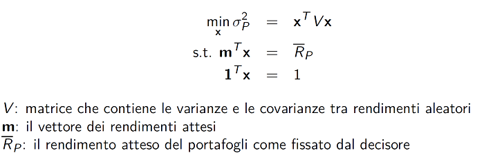 Rappresentazione della scelta del portafoglio ottimo come problema di ottimizzazione vincolata