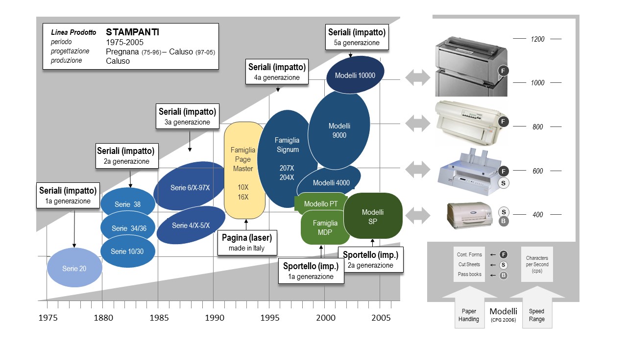In una logica di espansione maggiormente coerente con i punti di forza già presenti in azienda, fu studiata la possibilità e la fattibilità di un nuovo programma di sviluppi che utilizzassero, almeno inizialmente, la tecnologia di stampa a impatto ma capaci di indirizzare nuove o più ampie fasce di mercato. Si tradusse nell’idea di una famiglia di stampanti per applicazioni transazionali di dimensioni ridotte, 80 colonne di stampa, capace di trattare senza alcuna regolazione da parte dell’operatore qualunque tipo di carta inserito, allineandolo automaticamente e adeguandosi ‘al volo’ al variare del suo spessore (come nel caso dei libretti di risparmio).