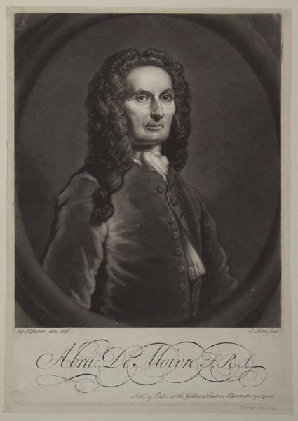 Nonostante il suo successo, non riuscì ad ottenere quella cattedra all'università che gli avrebbe consentito di raggiungere l'indipendenza economica per potersi dedicare ai suoi studi. Le sue ricerche riguardarono anche, nel campo probabilistico, lo studio della distribuzione normale e scoprì, anche se in forma incompleta, l'approssimazione di Stirling. Quest'ultima venne usata nel 1733 da de Moivre per derivare la variabile casuale normale come approssimazione della variabile casuale binomiale. In uno scritto del 1738 de Moivre accreditò a James Stirling i miglioramenti poi apportati alla formula. Ma la fama di de Moivre è anche legata al fatto che riuscì a prevedere esattamente il giorno della propria morte servendosi di un calcolo matematico. Infatti, notando che dormiva 15 minuti in più ogni giorno, suppose che sarebbe morto quando il sonno avesse raggiunto le 24 ore e precisamente il 27 novembre 1754.